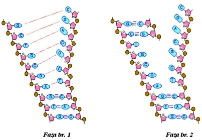 i djelimično razdvaja. Na razdvojenom dijelu, na jednoj niti DNK, koji