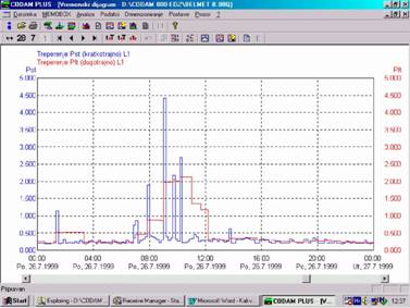 Slika 4. Treperenje (fliker) zbog uticaja dizalice Merenja su trajala sedam dana,i za to vreme su praćene vrednosti osnovnih