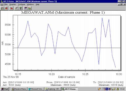 Slika 18. Prosečna jačina najveće struje tokom merenja u jednofaznom Aronovu spoju bila je približno 5 A