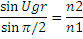 Slika 1 Totalna refleksija Upadni ugao ugr kome odgovara prelomni ugao π/2 naziva se granični