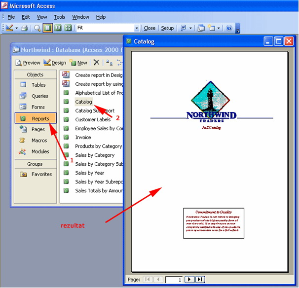 Ispisivanje tablica, upita, obrazaca, izvještaja