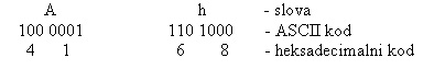 -prikažite slova A i h u ASCII-om i heksadecimalnom obliku.