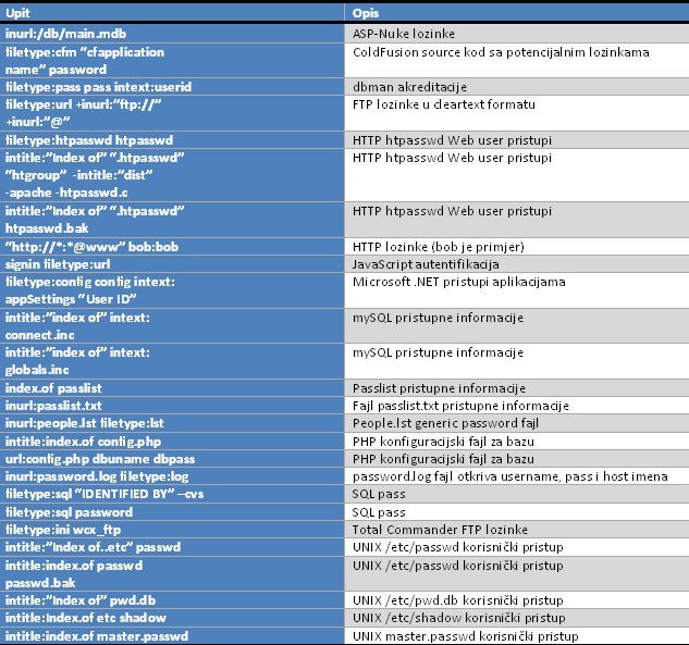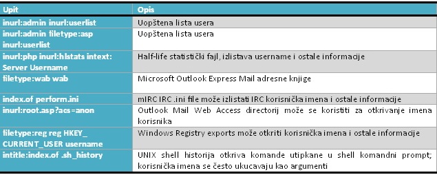 operatora. Iako je Google originalni alat za Google hakere, mnoge taktike