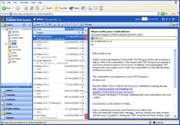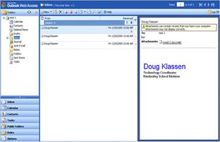 U Exchange Serveru 2003, Outlook Web Access izgleda jednako kao Outlook