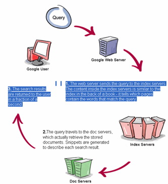 Na slici je uprošćeno prikazan način rada Google pretraživačke mašine.