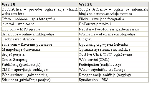 mreže, blogovi i wiki.“ Ili „Web 2.0 je poslovna revolucija u kompjuterskoj