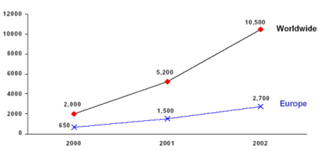 Graf 1. Rast broja e-martketplaces-a u 2000. godini