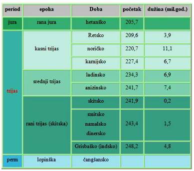 ima nekih nejasnoća) – rani (olenekijski) do kasnog karnijsko-trijaskog