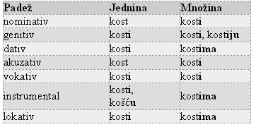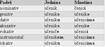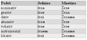 imenice koje zavise od njene službe u rečenici. Padežima se, prema tome,