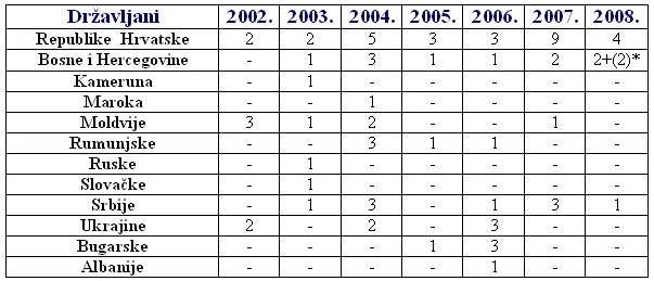 Kako bi detaljnije prikazao koliko je zastupljeno trgovanje ljudima, u narednoj tabeli sam prikazao statističke podatke od 2002-2008 godine u 12 država. U tabeli je prikazan ukupan broj žrtava po državljanstu.