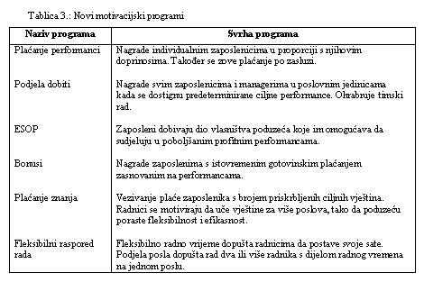 Primjeri novih motivacijskih programa ukazuju na činjenicu da zaposlenici