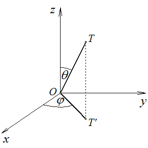 je ugao između pozitivnog dela z-ose i prave OT;