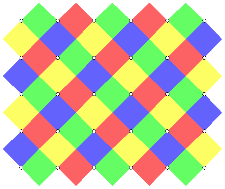Boje se ponavljaju periodično. Drugi način gledanja na gornju sliku jeste da uočimo ponavljanje "cvetnog uzorka":