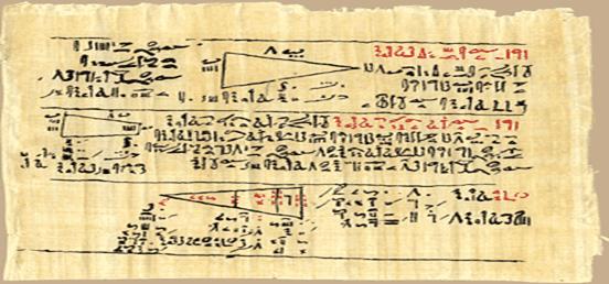 Najpoznatiji sacuvani papirus takozvani Rhind papyrus, odnosno ‘Rindov papirus’ (prikazan na fotografiji), koji potiče iz otprilike 1650 godine pre nove ere, pokazuje da su Egipćani prilikom računanja površina i zapremina oblih figura koristili za broj p aproksimaciju 4(8/9)2=3.16.