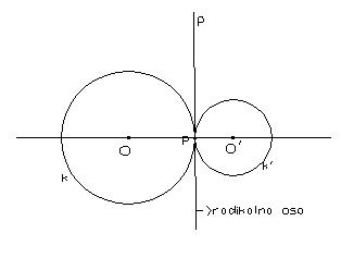 2. Krugovi se dodoruju- njihova radikalna osa je zajednička tangenta tih dvaju krugova u njihovoj dodirnoj tački.