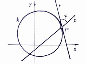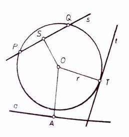 2 prava t je tangenta kruga. Tangenta je normalna na dodirni poluprečnik,