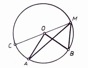 - Neka je MC prečnik kruga koji pripada uglu AMB. Trougao AOM je jednakokraki,
