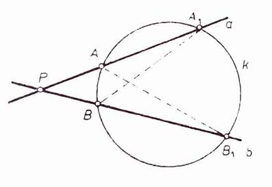 Neka je k(O, r) dati krug i A, B dve tačke na njemu, slika 1. Duž AB je