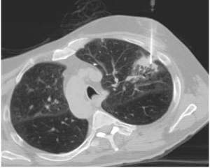 FNA (fine needle aspiration) - Uzimanje uzorka tumora iglom kroz torakalni zid u lokalnoj anesteziji i pod kontrolom kompjuterizovana tomografija CT. Ovakva metoda je manje invazivna u odnosu na otvorenu biopsiju, kad je potrebno napraviti rez na koži da bi uzeli uzorak.