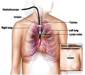Medijastinoskopija - je metoda koja se radi u opstoj anesteziji i kojom se dobijaju precizniji podaci o zahvaćenosti limfnih čvorova medijastinuma. koja je posebno značajna ukoliko se planira operativno lečenje.