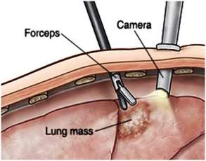 VATS (videoasistirana torakoskopija) - takođe je hirurška metoda, koja podrazumeva pravljenje malog reza na koži zida grudnog koša i ubacivanje optičkog instrumenta u unutrašnjost grudnog koša da bi se direktno videla pluća sa plućnom maramicom i da bi se sa sumnjivih mesta uzeli odgovarajući uzorci.
