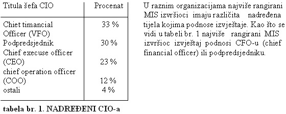 izvršilac u organizaciji nema uvijek titulu CIO. U firmama u kojima informacione
