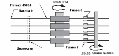 потребниот сектор се позиционира под главата за читање/запишување. Доколку