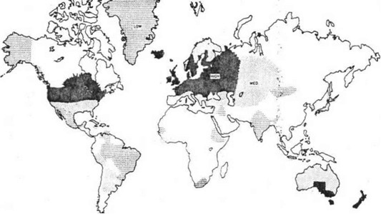 и на северната и на јужната хемисвера. Скандинавија и Оркни и
