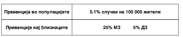 Табела 3: Преваленција на MC во популацијата и кај близнаците