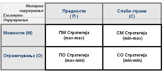 стратегии. Од SWOT матрицата можеме да извлечеме 4 стратегии: