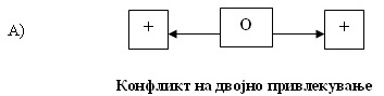Третиот вид е конфликтот на привлекување и одбивање. Овој конфликт