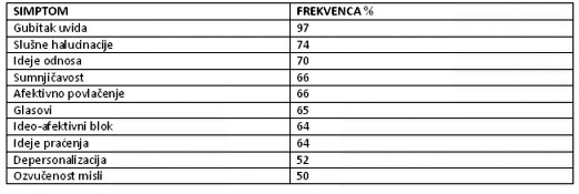 simptoma shizofrenije u trajanju od nekoliko nedelja bez progresije, kao