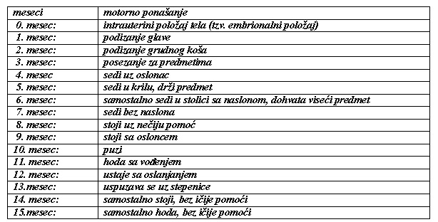kojih se može pratiti pravilnost toka motornog razvoja pojedinog deteta.