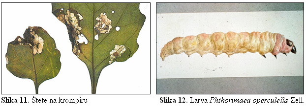 operculella Zell. pravi slična oštećenja na listu krompira (slika 11.),