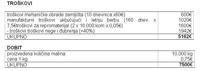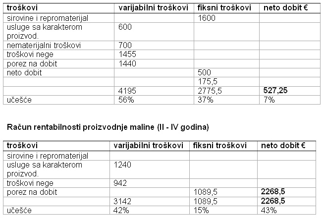 Račun rentabilnosti proizvodnje maline (plantaža,