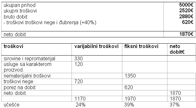 5. 1. EKONOMSKA KALKULACIJA PROIZVODNJE U MATIČNJAKU
