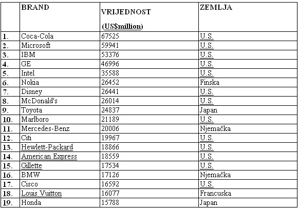 Coca-Cola, McDonald's, Sony, Mercedes, Microsoft i Nokia samo su neke