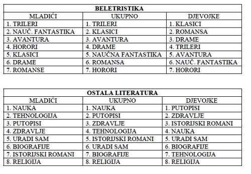 čitaju od srednjoškolaca. Gledano po polu, djevojke definitivno više čitaju