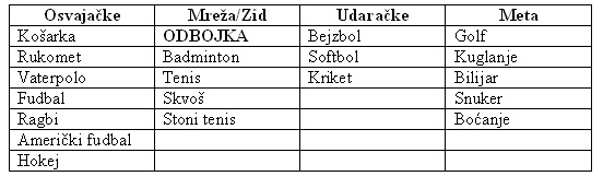 (engl. Striking/Fielding games) i (4) igre sa metom (engl. Target